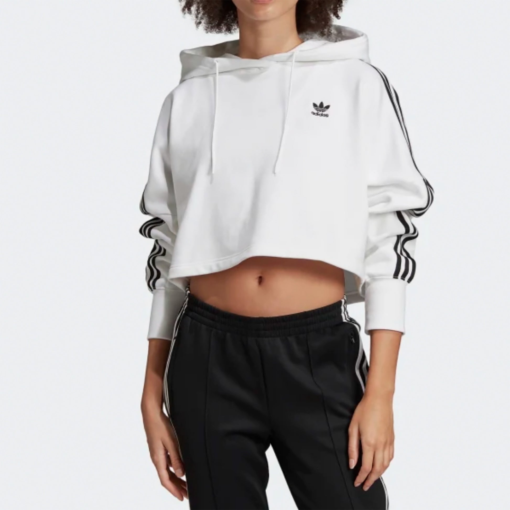 Adidas Originals Womens Cropped 3-Stripe Hoodie - White
